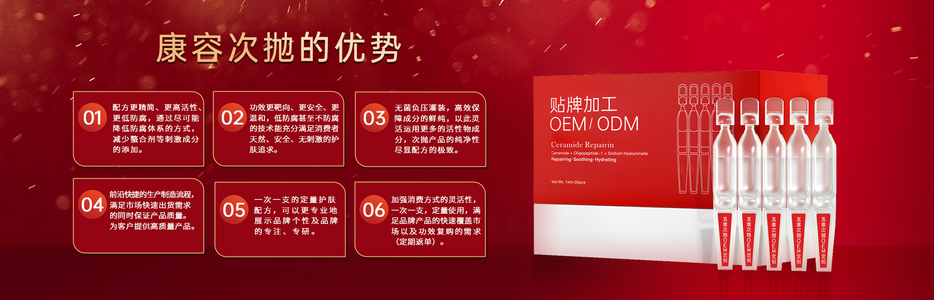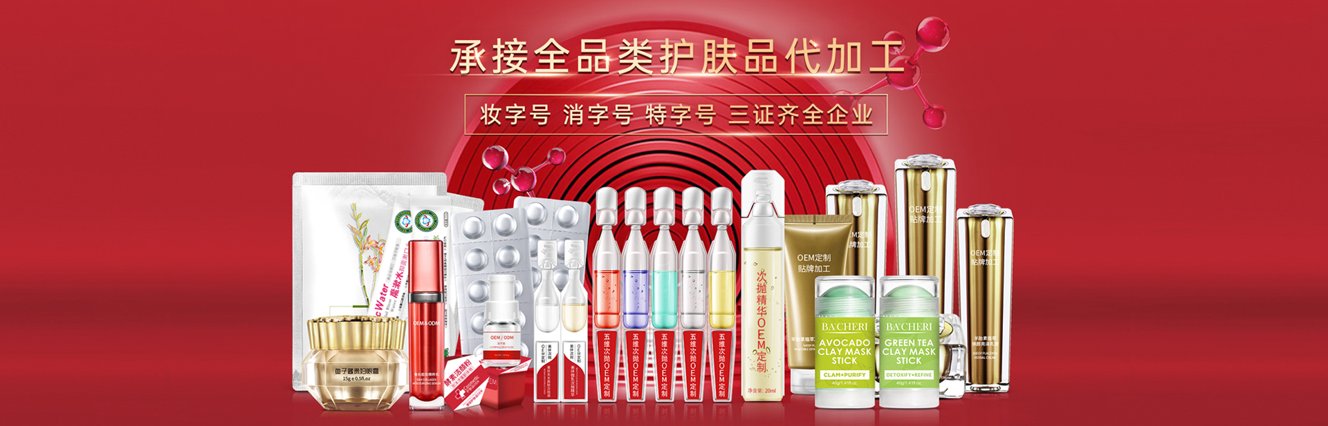 主營業務: 化妝品 oem / 化妝品加工 / 護膚品代加工 / 面膜加工 / 次拋原液代加工 / 凍干粉加工 / 嬰童系列加工 / 套盒系列加工等